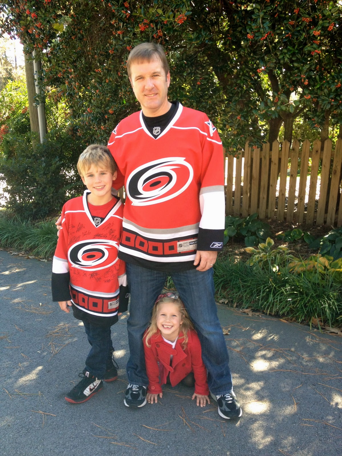 Being a Canes fan means going all out with your outfit. Charlotte and I didn't have jerseys, so we stuck with the team colors, but Anson and Russell are die-hard fans and sported the appropriate fan wear. Anson's was even signed by everyone on the team, thanks to a good friend who works for the team.